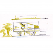A curtain of sounds that spill out into the silence of the forest. The concert hall offers many amenities and services for the visitors – Art Gallery, Music Center, Music club, two restaurants, a piano bar, large recreational open spaces with cafes, two halls and outdoor bandstand – amphitheater, studios and service facilities for musicians and guests. The proximity of the park makes it even more attractive as a forum for artists and their fans. LOCATION : The concert hall is located on the field of the former stadium ” Junak ” / ice rink “Druzhba” . The place is located in the city center at the beginning of Boris’s Garden – at the intersection of “Evlogi and Hristo Georgiev” Blvd and “Dragan Tsankov” Blvd in the area of the National Stadium “Vasil Levski”. The shape of the building is formed by the configuration of the existing buildings and streets and the approaches to them. It appears at the top of the sine curve in the falling parts of which are situated concave volumes – the stadium and the metro station and with them forms an elegant silhouette.