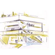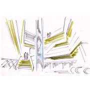 A curtain of sounds that spill out into the silence of the forest. The concert hall offers many amenities and services for the visitors – Art Gallery, Music Center, Music club, two restaurants, a piano bar, large recreational open spaces with cafes, two halls and outdoor bandstand – amphitheater, studios and service facilities for musicians and guests. The proximity of the park makes it even more attractive as a forum for artists and their fans. LOCATION : The concert hall is located on the field of the former stadium ” Junak ” / ice rink “Druzhba” . The place is located in the city center at the beginning of Boris’s Garden – at the intersection of “Evlogi and Hristo Georgiev” Blvd and “Dragan Tsankov” Blvd in the area of the National Stadium “Vasil Levski”. The shape of the building is formed by the configuration of the existing buildings and streets and the approaches to them. It appears at the top of the sine curve in the falling parts of which are situated concave volumes – the stadium and the metro station and with them forms an elegant silhouette.