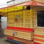 The main concept was to give more friendly and ecological look to a small pavilion. The main used material to decorate the old facade is wood. Furthermore new fresh vision is created without compromising the old construction or size of the object and we saved a lot of our client’s money. The wood has warm and friendly appearance and in combination with the colors of the brand creates a modern look and lightens up the mood of the clients. When the pavilion is closed the roof becomes a shutter that can be locked during the night.